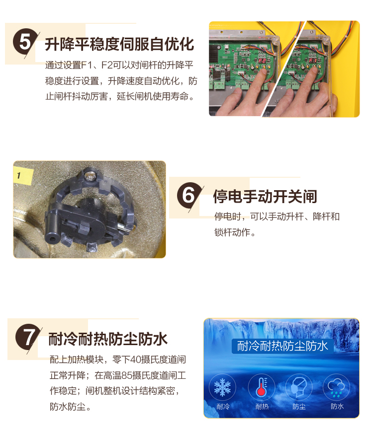 PAB-E直流伺服變頻數字道閘機是公司最近上市的新品道閘機,新道閘機最大程度為使用者提供便利:一是閘機左右向隨便換;二是更換閘桿類型無需另購道閘機;三是伺服功能,自行調節閘桿平穩度,減少抖動;四是故障自檢功能,大大提高故障解決速度;五是互聯網功能,直接用手機APP,控制閘機的升降,調速,定點停等功能。。。