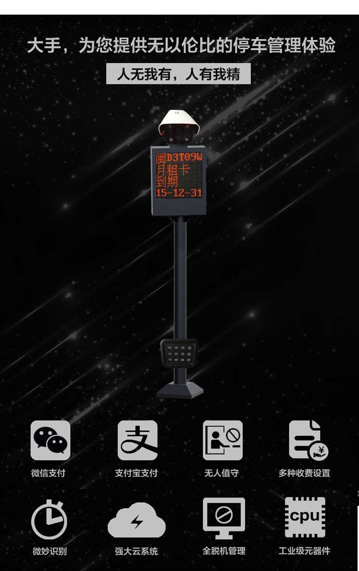 全脫機(jī)云支付車牌識(shí)別收費(fèi)管理系統(tǒng)是大手控制全新推出的一款經(jīng)濟(jì)型車牌識(shí)別收費(fèi)管理系統(tǒng),通過車牌識(shí)別對(duì)出入口車輛進(jìn)行快速識(shí)別判斷(包括車輛進(jìn)出場權(quán)限、車輛停車時(shí)間以及車輛應(yīng)繳費(fèi)用等),以實(shí)現(xiàn)車輛秒進(jìn)/秒出停車場。系統(tǒng)以車牌識(shí)別率高、性能穩(wěn)定、功能實(shí)用、操作及施工簡單為設(shè)計(jì)思路,真正實(shí)現(xiàn)全脫機(jī)管理臨時(shí)車輛的獨(dú)有功能,極具性價(jià)比。