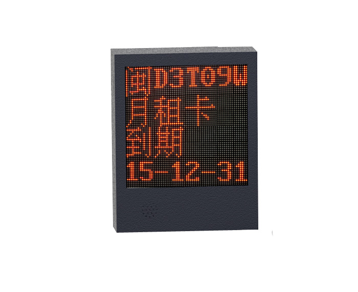 戶外四行LED顯示屏,既可作為入口顯示屏,顯示歡迎詞、空余車位、車牌號碼、車輛類型,進場入口及時間等信息,也可作為出口顯示屏,顯示收費金額、車牌號碼、車輛類型、進場入口、進場時間及停車時間等內容。內置的語音提示可按照設定的語音進行提示(如:歡迎光臨、請繳費xxx元、一路平安等),聲音也可根據需要進行調整。